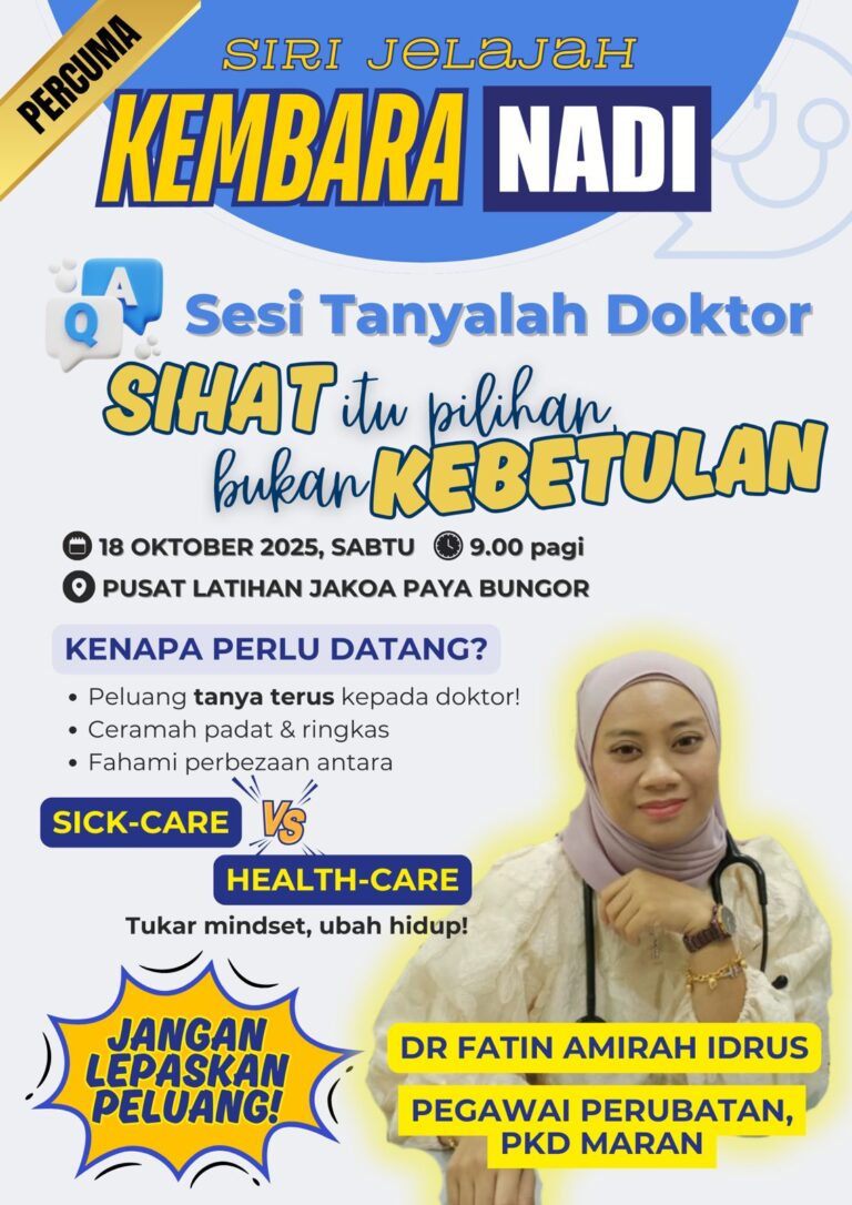 📅 18 OKTOBER 2025 (SABTU)🕗 8.30 PAGI – 12.30 TENGAH HARI📍 DEWAN PUSAT LATIHAN JAKOA, PAYA BUNGOR💥 MASUK PERCUMA!🥐 Sarapan Pagi, Minum Pagi & Makan Tengahari Disediakan!🎯 AKTIVITI MENARIK!🏃♀️ Senamrobik Ceria🩺 Saringan Kesihatan Percuma💃🏻 Saringan Mata Percuma😁 Klinik Pergigian🕶️ Pameran […]