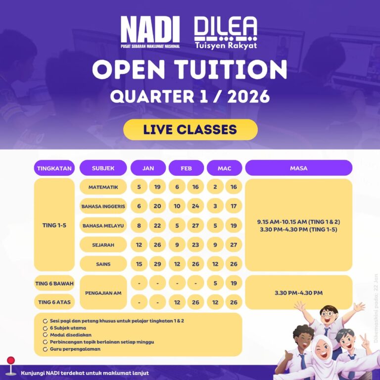 NADI DILEA kembali dengan kelas tuisyen LIVE untuk pelajar Tingkatan 1–5 & Tingkatan 6!